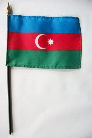 Our 4in x 6in Azerbaijan Miniature Flags are made of an extremely durable silk-like material and are mounted on a 10.5inch black plastic staff with a gilt spearhead. Each flag is individually sewn around the edges. These are perfect for decorating or for waving in a parade to show your national pride.