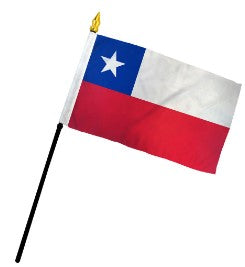 Our 4in x 6in Chile miniature Stick Flags are made of an extremely durable silk-like material and are mounted on a 10.5inch black plastic staff with a gilt spearhead. Each flag is individually sewn around the edges. These are perfect for decorating or for waving in a parade to show your national pride.