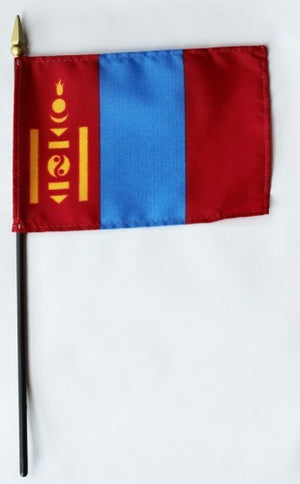 Nuestras banderas en miniatura de Mongolia de 4 x 6 pulgadas están hechas de un material similar a la seda extremadamente duradero y están montadas en un asta de plástico negro de 10,5 pulgadas con una punta de lanza dorada. Cada bandera está cosida individualmente alrededor de los bordes. Son perfectos para decorar o para saludar en un desfile y mostrar su orgullo nacional.
