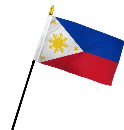 Nuestras banderas en miniatura de Filipinas de 4 x 6 pulgadas están hechas de un material similar a la seda extremadamente duradero y están montadas en un asta de plástico negro de 10,5 pulgadas con una punta de lanza dorada. Cada bandera está cosida individualmente alrededor de los bordes.