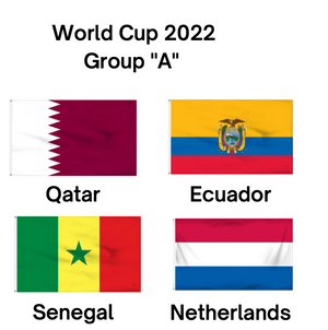 Compre banderas de la Copa Mundial de la FIFA: el grupo A incluye: el anfitrión Qatar, Ecuador, los Países Bajos y Senegal.