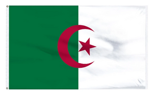 Our premium Algeria Outdoor Nylon Flags are the best commercial high-wind flags in the industry. The Flag of Algeria are made from a heavyweight nylon that has a special treatment that will reduce sun and chemical deterioration and are finished with strong canvas headings and large brass grommets.
